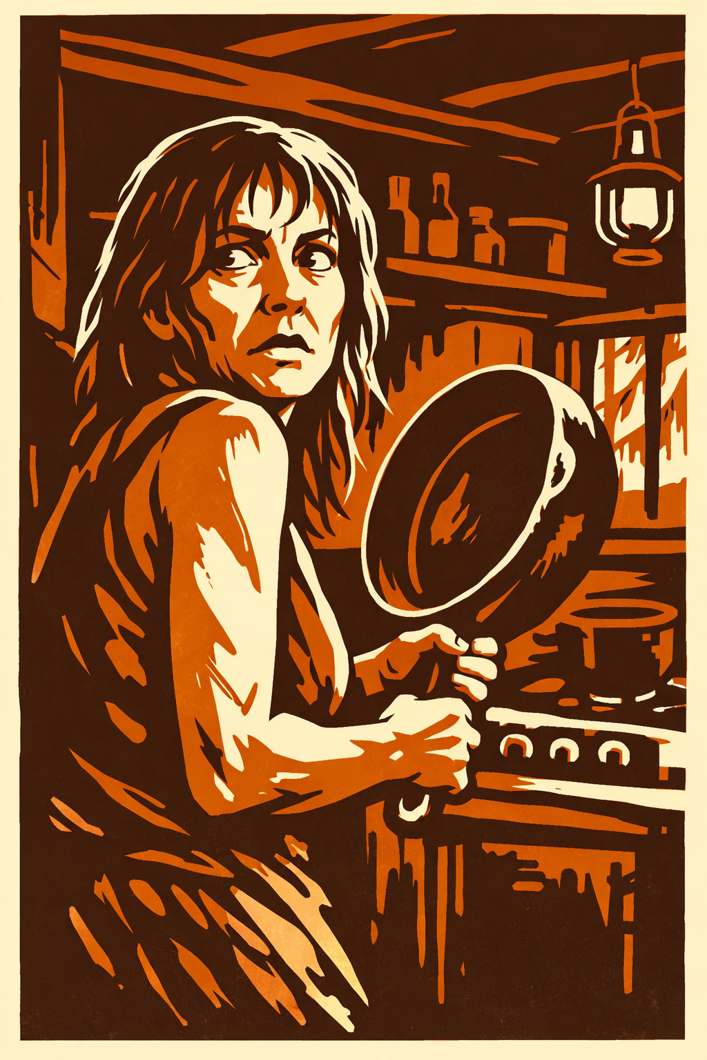She pulled the locker open so hard it banged, and grabbed a big cast iron skillet. It was heavier than she remembered. She gripped it with both hands and went back into the bedroom.
